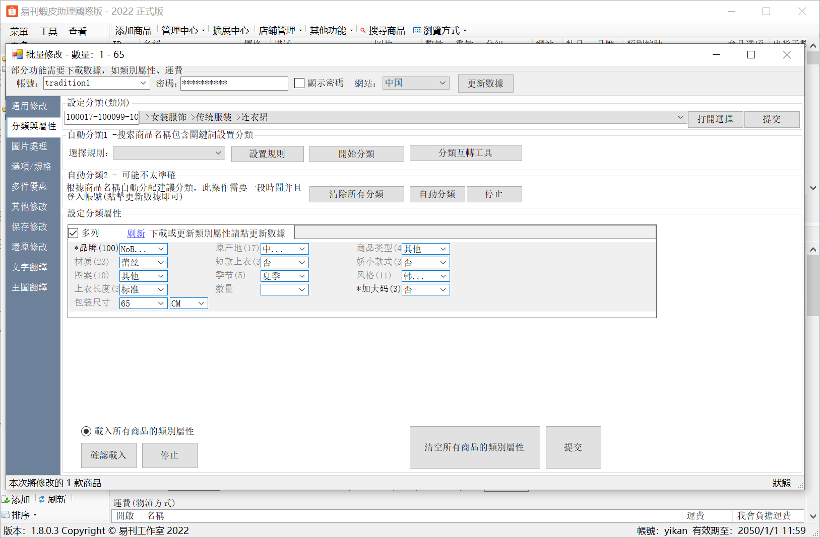 偶然在网上看到一篇文,说易刊蝦皮助理國際版 很好用,抱着试试看的心情,却让我解放了双手!我们主要做台湾虾皮站,易刊软件能快速把我淘宝店上的产品搬家到虾皮,还自动翻译成繁体,简直不能再好用了!