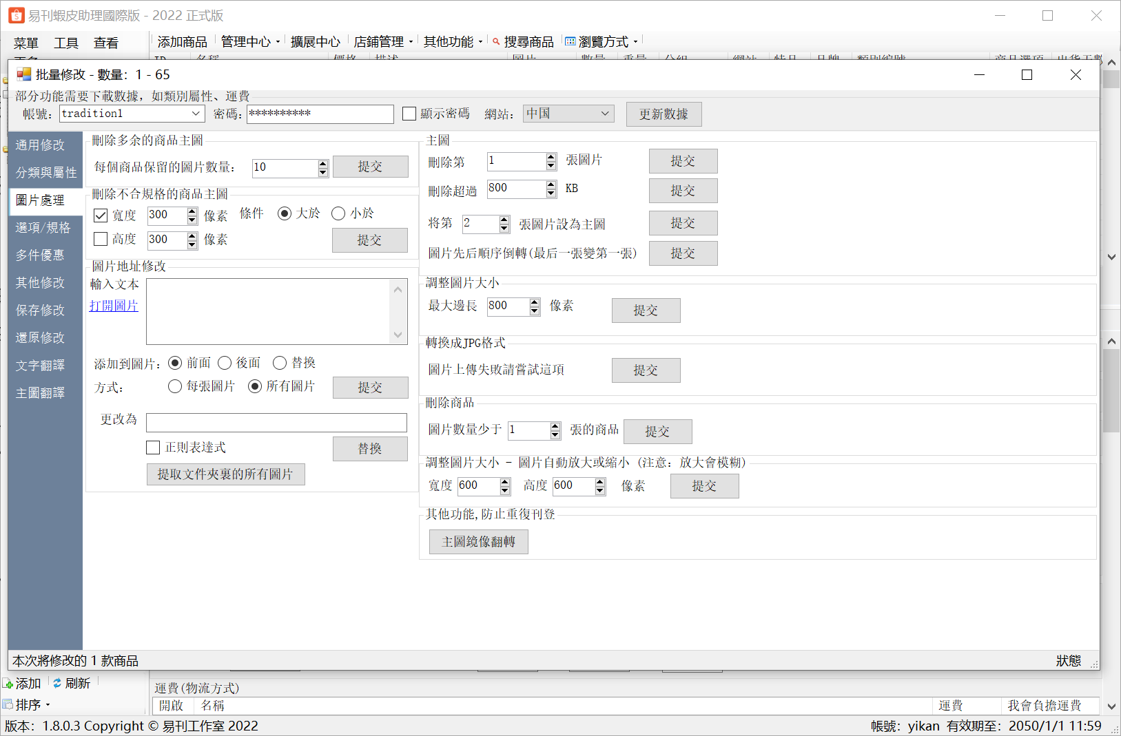 支持批量编辑修改产品标题、关键词、属性、库存等,智能去除上家链接,批量修改图片添加删除水印,发布产品快人一步,一步领先一路领先!广受卖家的好评!