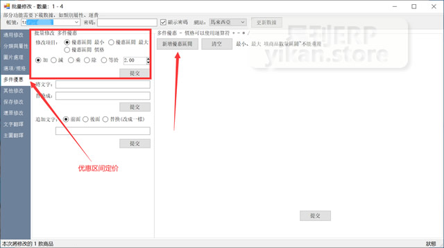 如果要修改优惠区间定价,在左侧点击【多件优惠】,设置后提交,如下图: