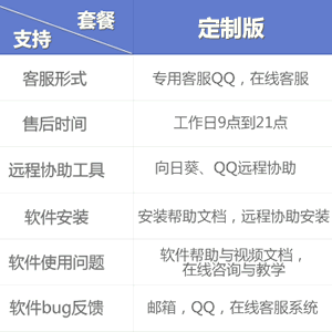 以下套餐是我们客户里最畅销的,如果也适合您可以直接自助购买;如果需要其他套餐或定制软件可以联系我们的在线客服。